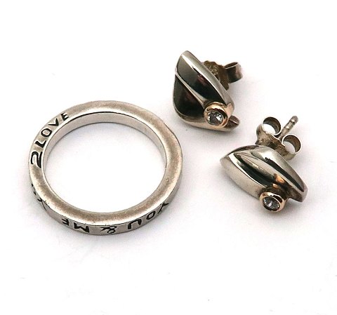 2Love ring og par ørestikker af sterling sølv
