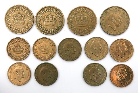 Christian X / Frederik IX, 2 kr og 1 kr 1924 - 1959 (13)