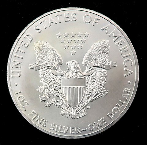 Forside med Frihedsgudinden og den amerikanske ørn på bagsiden. 1 ounce finsølv - fin ucirkuleret kvalitet