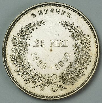 Christian IX, 2 kr SØLV 1892 - H. 11 *Chr. IX & Dronning Louises guldbryllup*