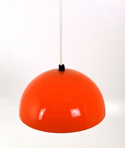 Verner Panton, VP1 Retro loftpendel fra 1978, fremstillet i orange og hvid ægte emaille. Diameter 23 cm. x H. 16 cm. Lyskilde E27.