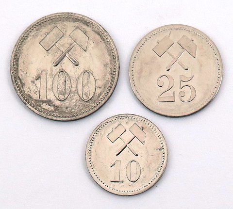Grønlandsk Minedrift 1911, komplet sæt 10, 25 og 100 øre