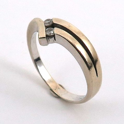 Ring af 14 kt. hvidguld med 2 brillanter 0,06 ct.