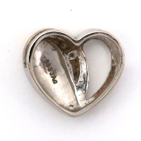 Vedhæng i form af hjerte af 14 kt. hvidguld, prydet med tre små diamanter, ca. 0,015 ct. L. 10 mm.