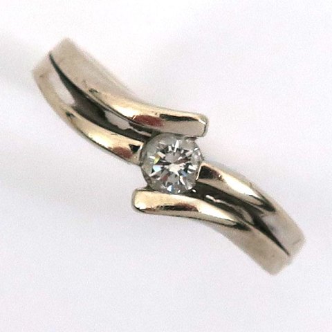 Chanti ring af 14 kt. hvidguld med dobbelt cross-over skinne, prydet med brillantsleben diamant på 0,15 ct., Ring Str. 54., samlet vægt 4,1 gr.
