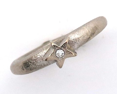 Dansk designring af 18 kt. hvidguld, prydet med brillantsleben diamant på ca. 0,015 ct. Ring str. 55, samlet vægt ca. 7 gr.
