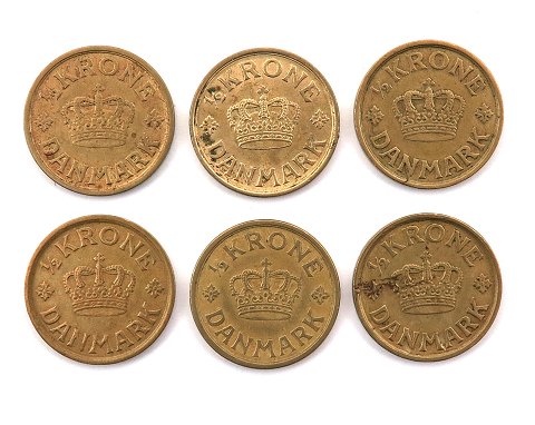 Christian X, ½ kr 2x 1924, 2x 1925 og 2x 1940 (6)