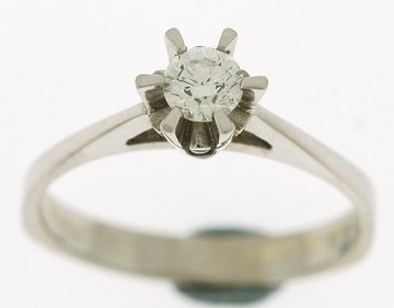 Ring af 14 kt. hvidguld, prydet m. en brillantsleben diamant på 0,31 ct. TW-W/VS. Stemplet "SKR 585". Str. 55.