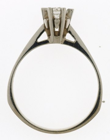 Ring af 14 kt. hvidguld, prydet m. en brillantsleben diamant på 0,31 ct. TW-W/VS. Stemplet "SKR 585". Str. 55.