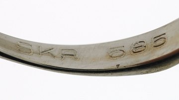 Ring af 14 kt. hvidguld, prydet m. en brillantsleben diamant på 0,31 ct. TW-W/VS. Stemplet "SKR 585". Str. 55.