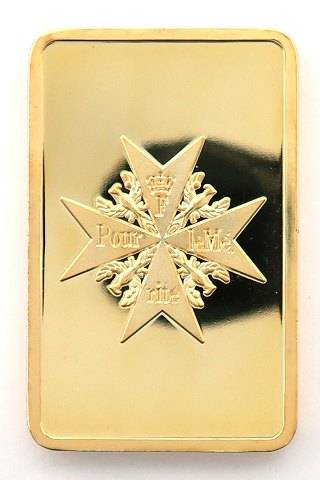 Forgyldt metal med motiv af fly og Manfred von Richthofens fødsels- og dødsdag.