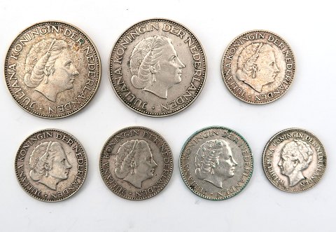 Nederlandene. 2x 2 ½ Gulden sølv 1960, 4x 1 Gulden sølv 1955 samt ½ Gulden sølv.
