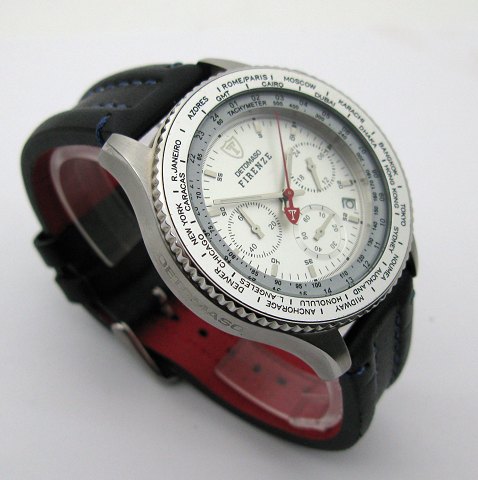 DeTomaso Firenze Chronograph herrearmbåndsur, ref. nr. SL1624C (CH) i urkasse af stål. Alufarvet skive med verdenstid lynette, stregindikation, central- og separat sekundviser, datovisning i "4½ position samt chronograph funktioner. Quartzværk. Urkasse diameter 42 mm.
