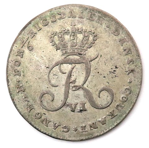 Frederik VI, 1/6 Rigsdaler Offermark sølv 1808 - H 6