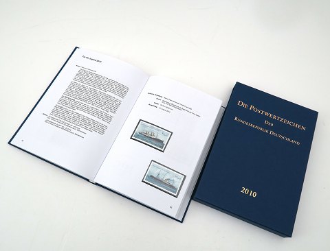 Årssæt 2010 *Die Postwertzeichen der Deutschen Bundespost* - indbundet årsmappe med alle de tyske, gangbare frimærkeudgivelser for året 2010 i €. Flot indbundet mappe på 99 sider med utallige, postfriske frimærker i indstikslommer.