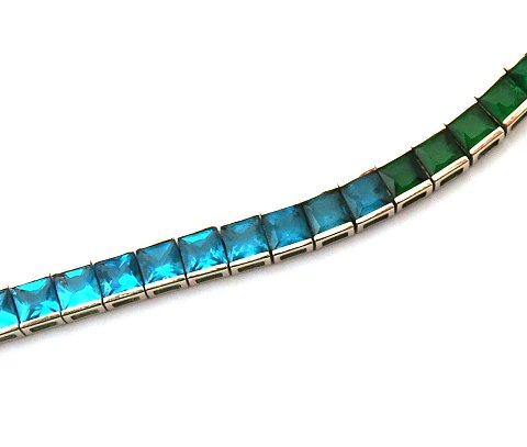Multicolor tennisarmlænke af 9 kt. guld, prydet med facetslebne ametyster, citriner, turmaliner og spineller i regnbueeffekt. L. 19,5 cm., samlet vægt ca. 10 gr.