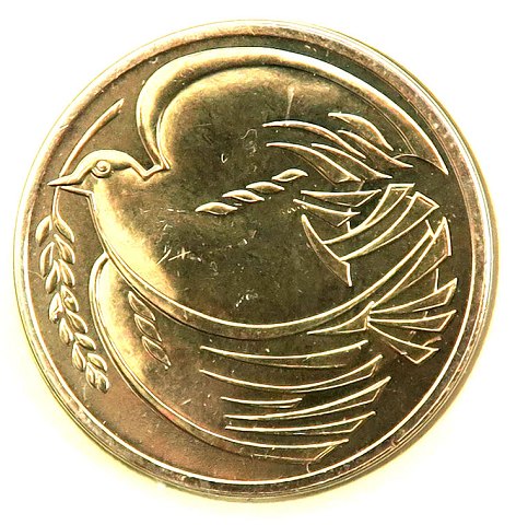 2 Pounds uden årstal, præget i anledning af 50 året for afslutningen af II. verdenskrig. Mønten er ucirkuleret monteret i illustreret mappe.