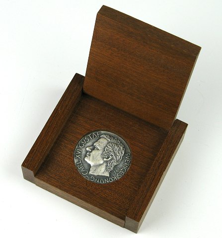 Medaille af sterling sølv, præget i anledning af Carl XVI Gustav kroning i 1973. Diameter 40 mm. Finsølvindhold 44 gr.