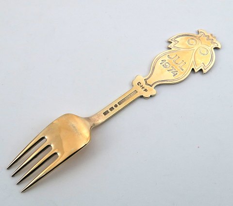 A. Michelsen julegaffel af forgyldt sterling sølv 1974