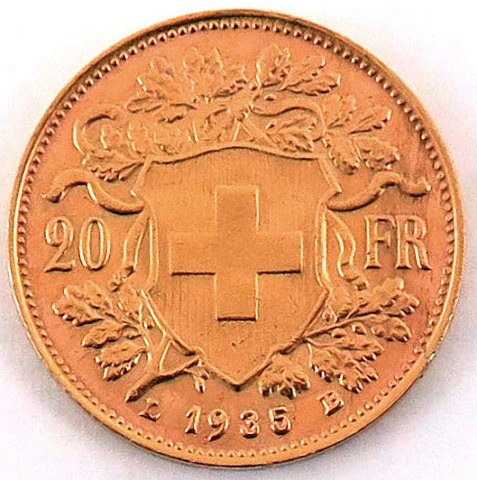 Schweiz, 20 Francs guld 1935 B - KM 35.1