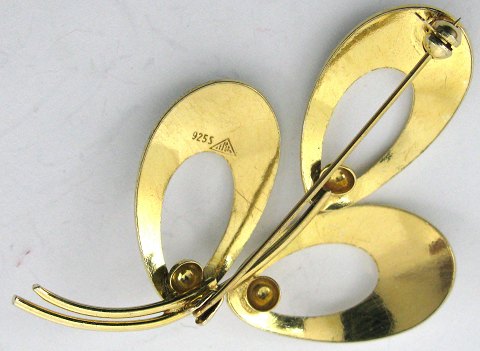 Broche af forgyldt sterling sølv prydet med hvid emalje