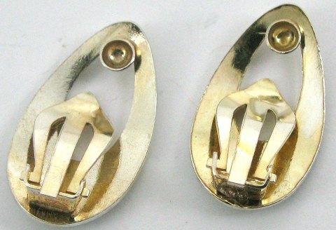 Par øreclips af forgyldt sterling sølv prydet med hvid emalje