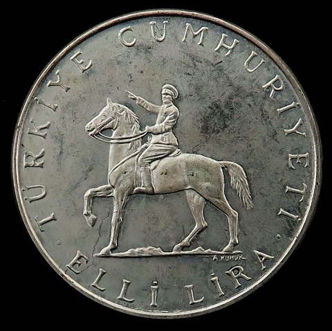 Tyrkiet, 50 Lira, ND(1972), sølv, 20,10 gr., .830, KM #901