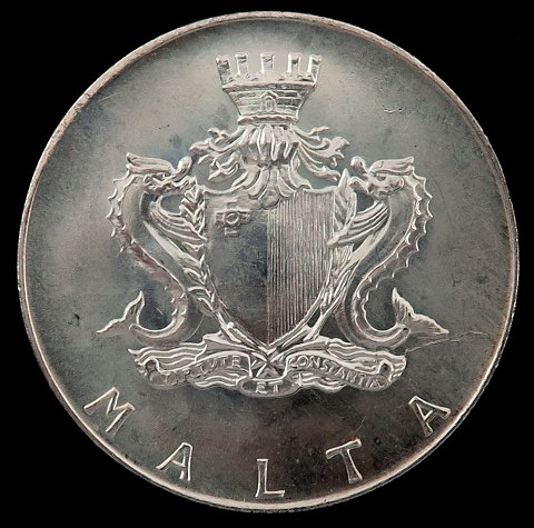 Malta, 4 Pounds, 1974, sølv, 20.00 gr., .987, KM #25