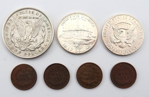 USA, 1 Dollar og 2x Half Dollar sølv samt 4x Cent *Indian Head* (7)
