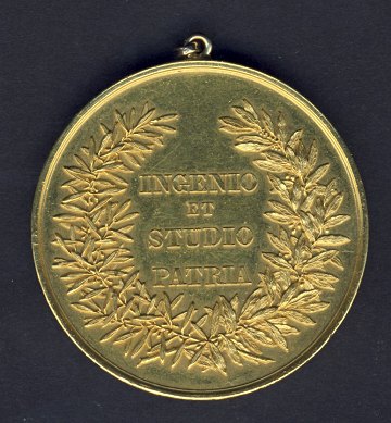 Københavns Universitets store guldmedaille, Ingenio et studio patria. Uddeles til studerende der har vundet en prisopgave. 42 mm vægt 54,1 gr .986 guld