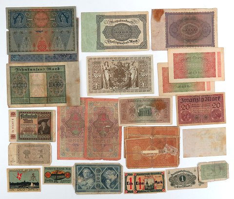 Lot tyske og russiske sedler fra inflationstiden omkring 1920 (29)