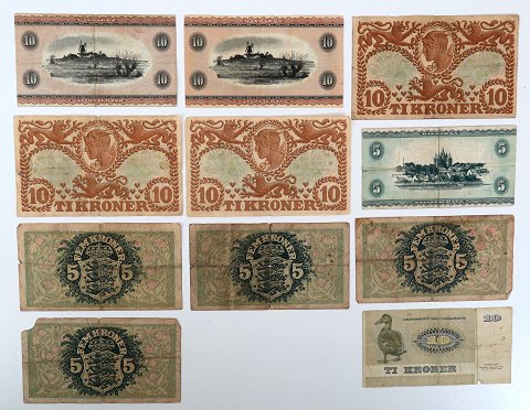 Lot bestående af 10 kr. 1941, -41, -43, 10 kr. 1936, 10 kr. 1977, 4x 5 kr 1940, 3x 5 kr 1942 samt 5 kr 1955
