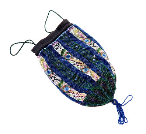 Antik, perlebroderet purse med indvendig for af sort stof.
