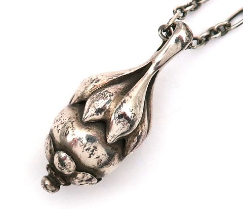 Georg Jensen halssmykke af sterling sølv i form af halskæde og vedhæng. Kæde L. 46 cm.