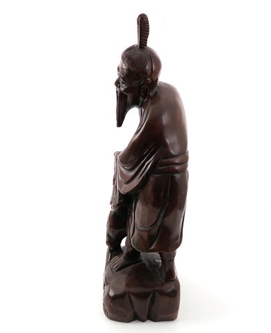 Stor kinesisk figur af håndskåret hårdtræ, H. 67 cm.