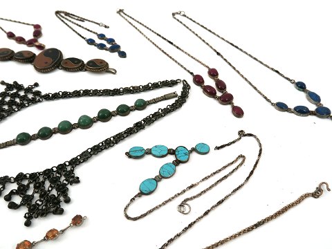 Lot gl. orientalske smykker i form af halskæder og armlænker, prydet med sten.
