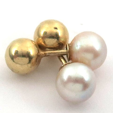 Par ørestikker af 14 kt. guld, hver prydet med 6½ mm. kulturperle. Mekanik prydet med guldperle, således ørestikkerne kan anvendes omvendt. Samlet vægt ca. 2,5 gr.