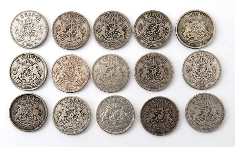 Oscar II, 2 kroner, 1876 - 1907, sølv (15)