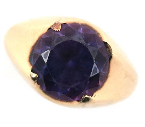 Ring af 14 kt. guld, prydet med rund, facetsleben ametyst, diameter 11 mm. Ring Str. 55, vægt ca. 5 gr.