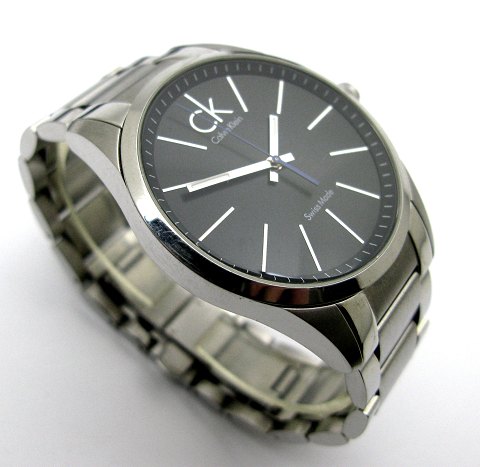 Calvin Klein herrearmbåndsur, ref. nr. K 22411 i urkasse og lænke af stål med sort skive, stregindikation og central sekundviser. Quartzværk. Urkasse diameter 42 mm.