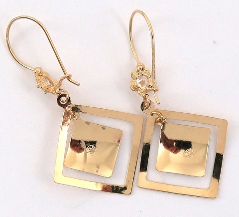 Par ørelokker af 18 kt. guld og diamantformede, klare sten.