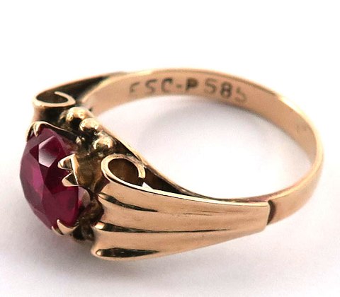 Ring af 14 kt. guld med rubinfarvet sten.