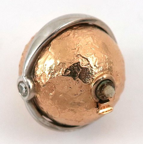 Per Borup, dobbeltradet perlecollier med kuglelås af 14 kt. tofarvet guld, prydet med to diamanter på tilsammen 0,06 ct. Løs vægt ca. 6 gr.