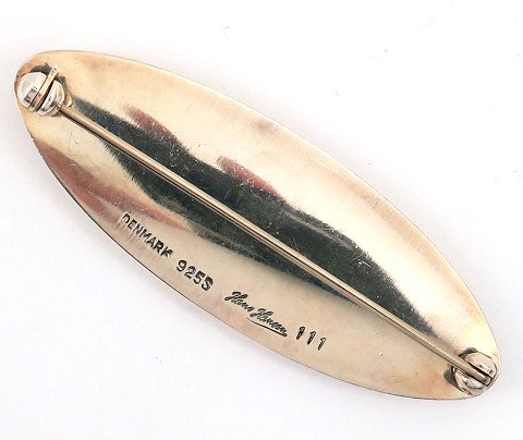 Hans Hansen broche af sterling sølv, dess. 111 i form af indad bøjet blad. L. 58 mm, vægt ca. 18 gr.