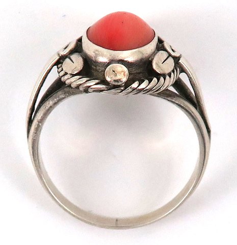 Georg Jensen ring af sterling sølv, prydet med koral - dess. 1