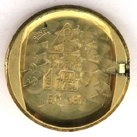 Omega damearmbåndsur i urkasse af 18 kt. guld. Champagnefarvet skive med stregindikation. Mekanisk optræksværk nr. 24344304, urkasse diameter 12 mm. Firben læderrem med Inox spænde. Guldvægt uden urværk udregnet til ca. 3,5 gr. (Optrækskrone af guld ikke medregnet), samlet vægt 9,5 gr.