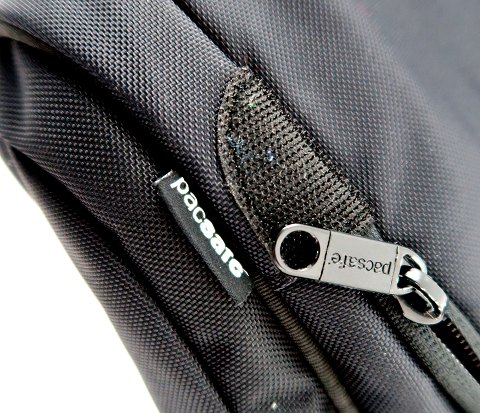 Pac Safe rejsetaske med kraftig "cut-safe" skulderrem. Bag udvendig klap diverse rum til f.eks. mobilen og rejsedokumenter m.v.