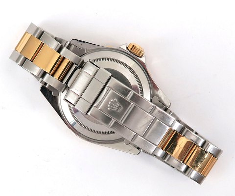 Rolex Submariner herrearmbåndsur, model Submariner, ref. nr. 16613, i urkasse og med oysterlænke af 18 kt. guld/stål. Blå skive bag safirglas med stregindeks, central sekundviser og datoangivelse i #3 position. Marineblå lynette. Automatisk urværk. T-serie fra 1997. Urkasse diameter 40 mm.