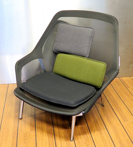Fransk design hvilestol af tæt og kraftig kunststof væv, udspændt på stel af forkromet metal. Udgave med sort sædepude, samt koksgrå og olivengrøn rygpude. Ryg H. 90 cm., sæde H. ca. 38 cm. Designet af Ronan & Erwan Bourroullec i 2006 - Distribution Vitra.