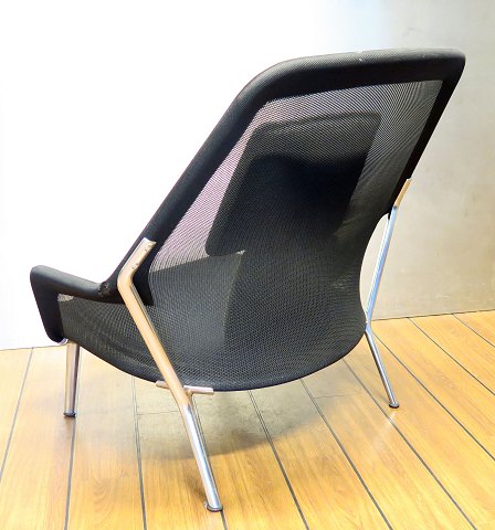 Fransk design hvilestol af tæt og kraftig kunststof væv, udspændt på stel af forkromet metal. Udgave med sort sædepude, samt koksgrå og olivengrøn rygpude. Ryg H. 90 cm., sæde H. ca. 38 cm. Designet af Ronan & Erwan Bourroullec i 2006 - Distribution Vitra.